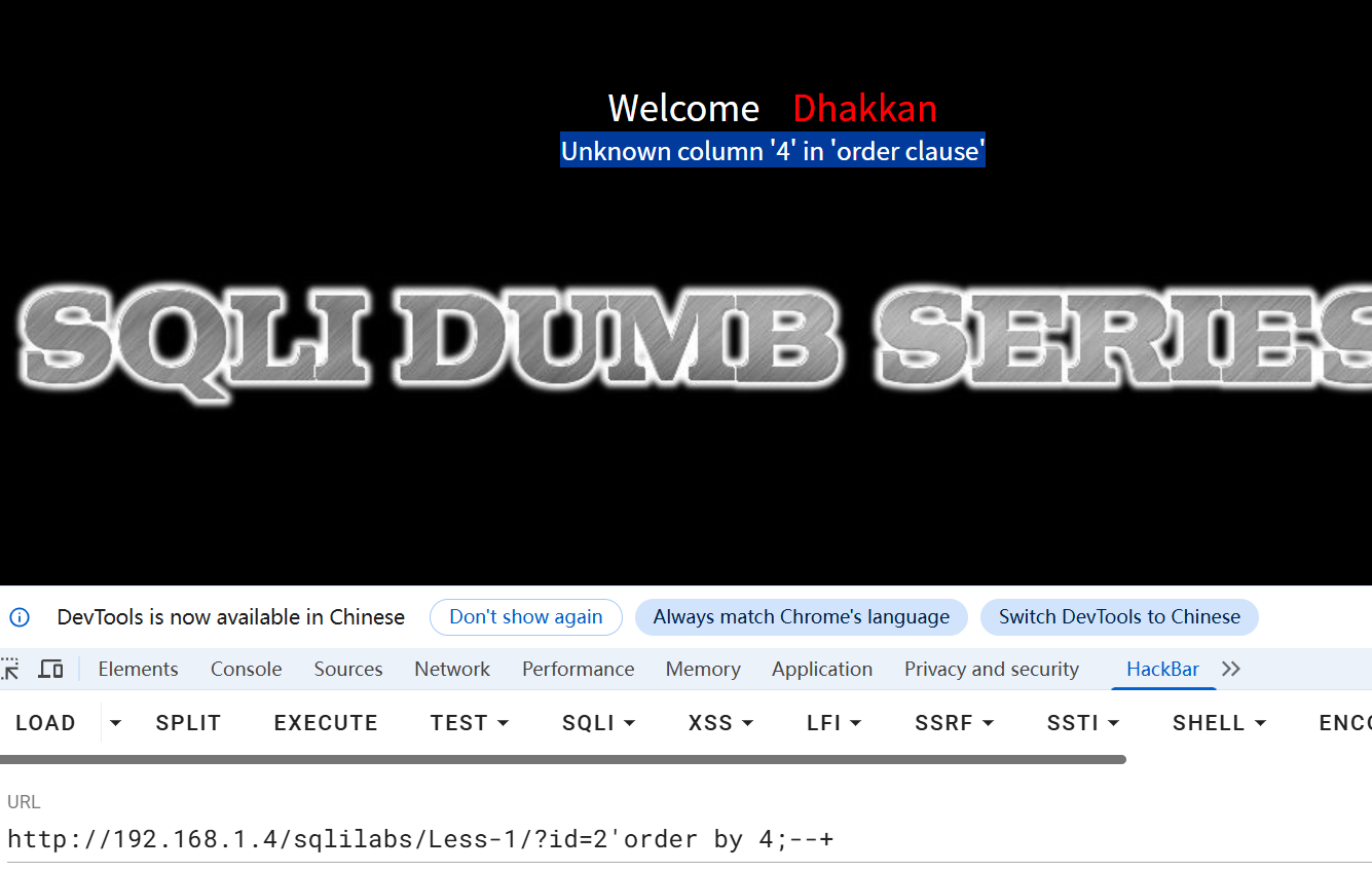 出现Unknown column '4' in 'order clause'说明无第四列