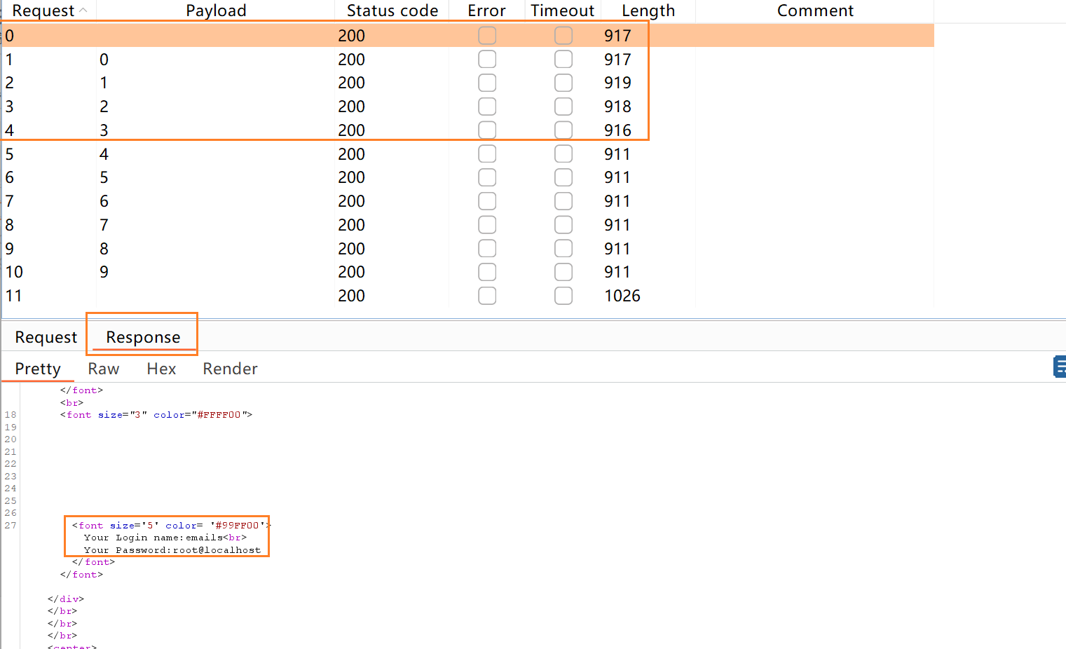 - 查看返回值不一致的说明爆破成功