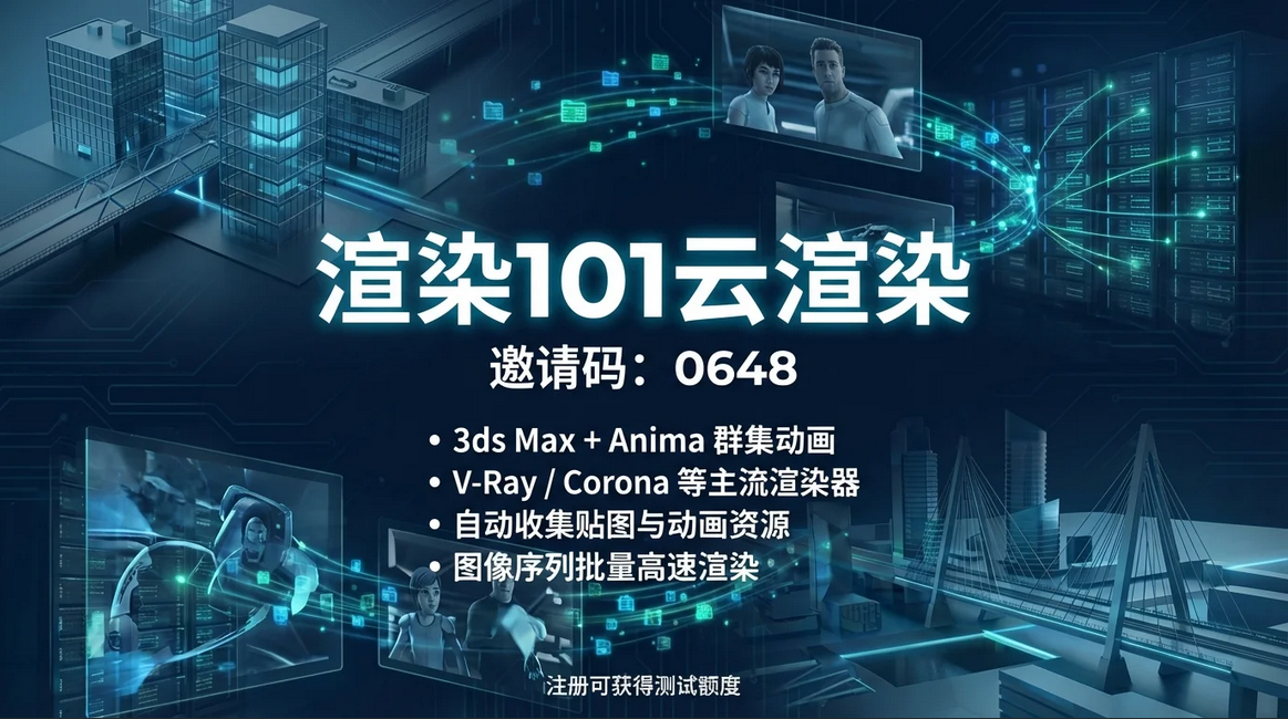 渲染101云渲染 是一款面向 3D 动画与建筑可视化的云端渲染平台,支持 3ds Max 场景及 Anima 群体动画项目。