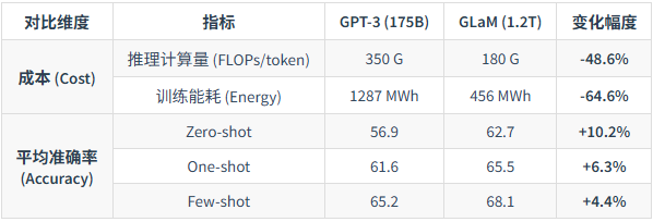 GLaM将参数规模推向了1.2万亿,是GPT-3(175B)的7倍。不过,得益于稀疏MoE架构,它在保证超大规模参数容量的同时,实现了比GPT-3更高的训练和推理效率。