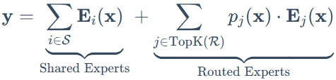 其中S代表共享专家集合(总是被激活),R代表路由专家集合(仅选择性激活)。这种双路径结构是其区别于传统MoE的关键。