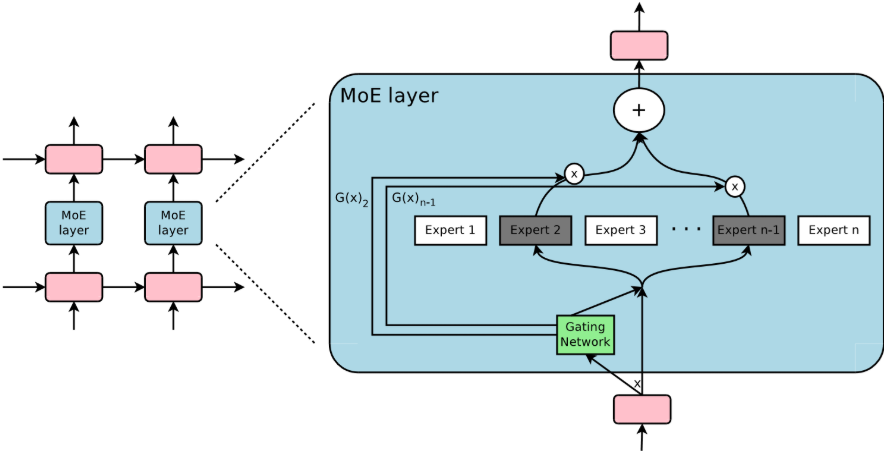 Google Brain团队(包括Geoffrey Hinton和Jeff Dean等)于2017年发表了论文《Outrageously Large Neural Network: The Sparsely-Gated Mixture-of-Experts Layer》,正式将MoE带入了超大规模模型(百亿参数级)的时代。