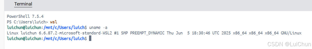 2:从Windows PowerShell切换到WSL环境后,如何确认当前确实处于Linux系统中?