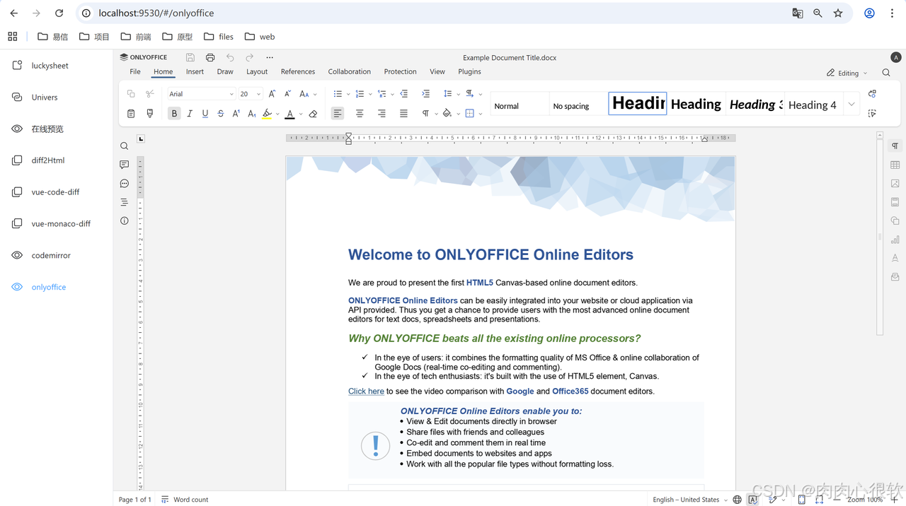 ONLYOFFICE 前端嵌入依赖 后端服务支撑 (前端无法单独运行)