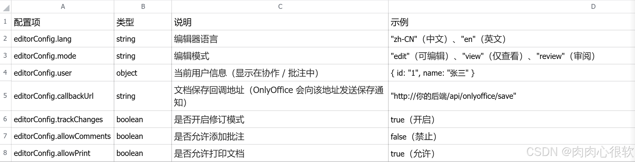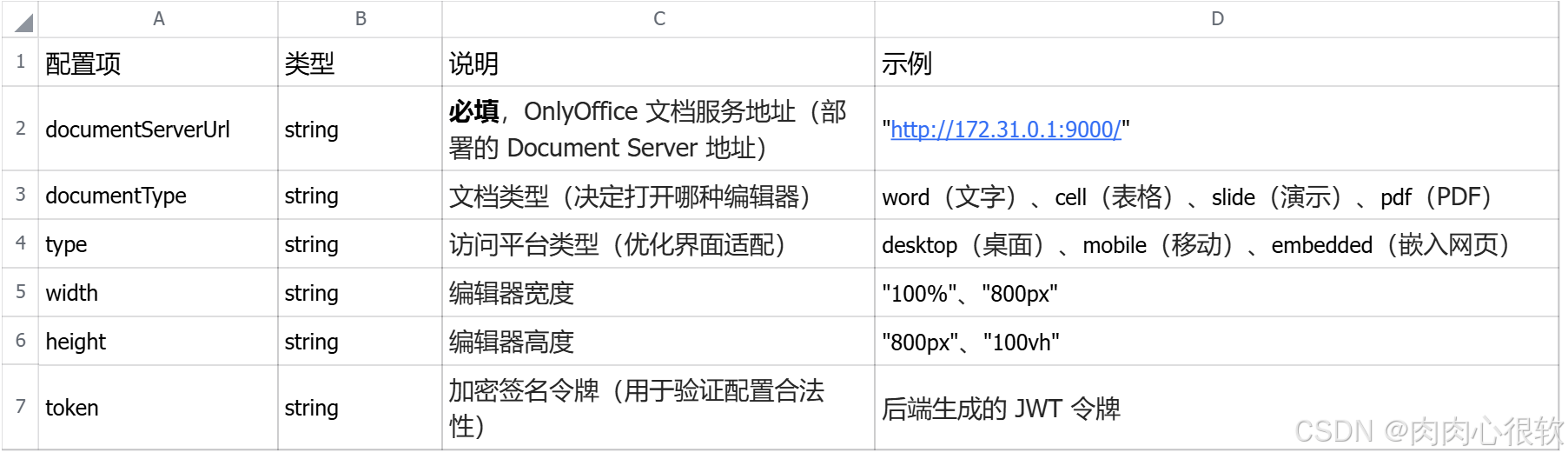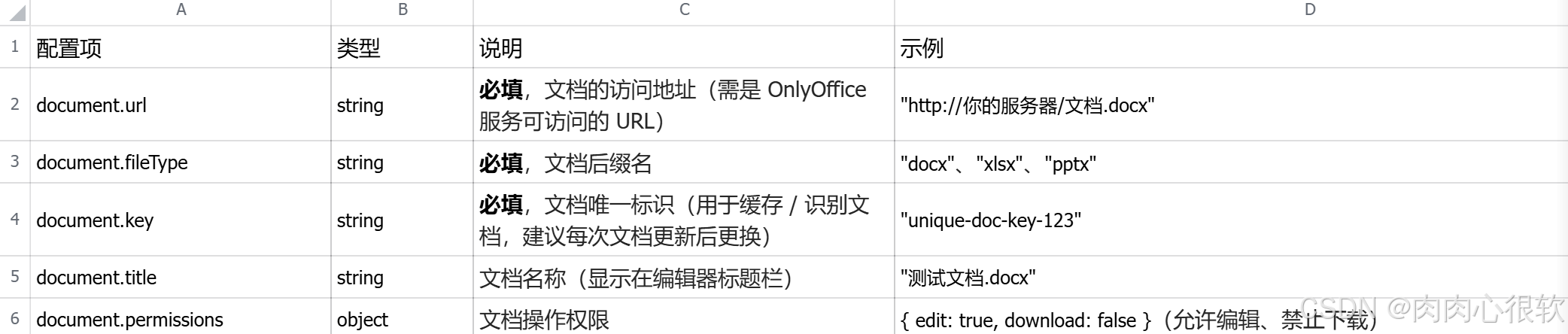 这些是初始化 OnlyOffice 编辑器的必填 / 基础参数: