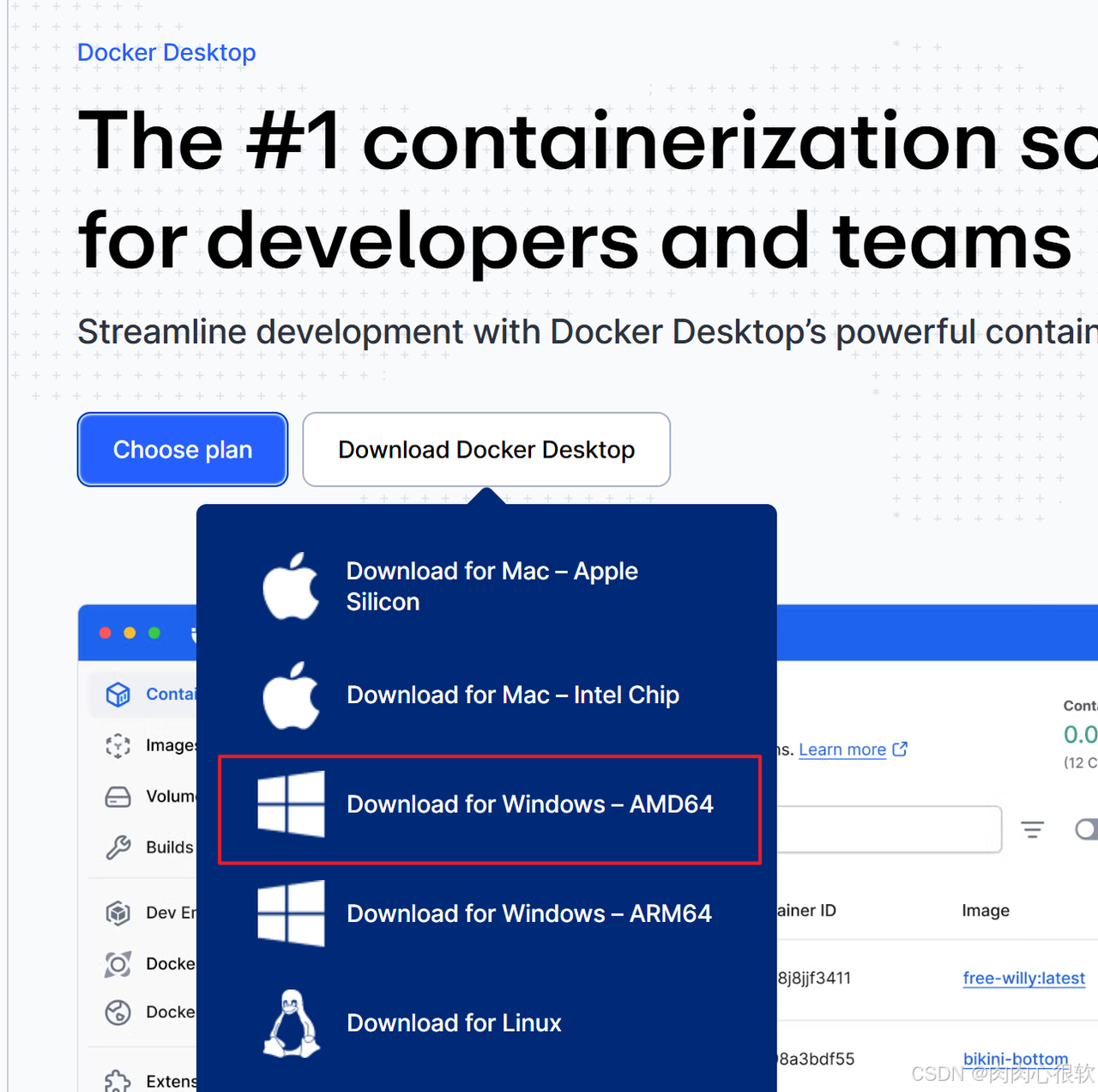下载 Docker Desktop(Windows/macOS)或 Docker Engine(Linux)