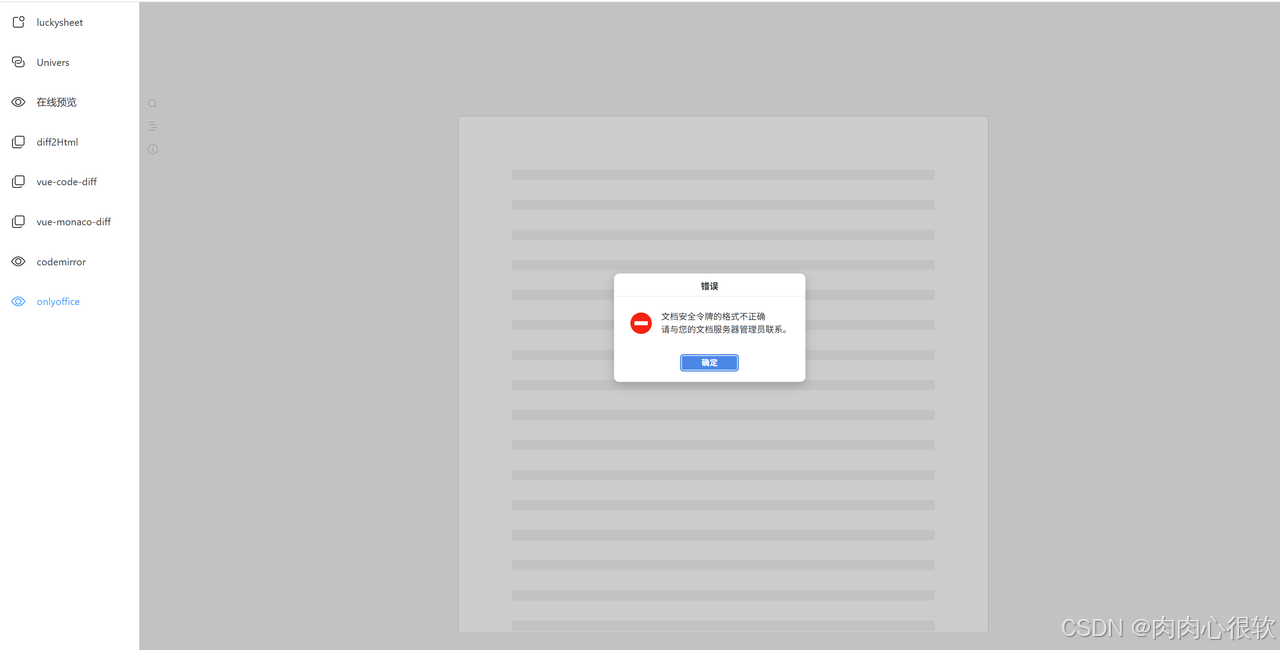这个错误提示("文档安全令牌格式不正确")是 OnlyOffice Document Server 的令牌验证机制触发的,问题根源是前端未正确传递合法的 JWT 令牌,或服务端的令牌验证未关闭