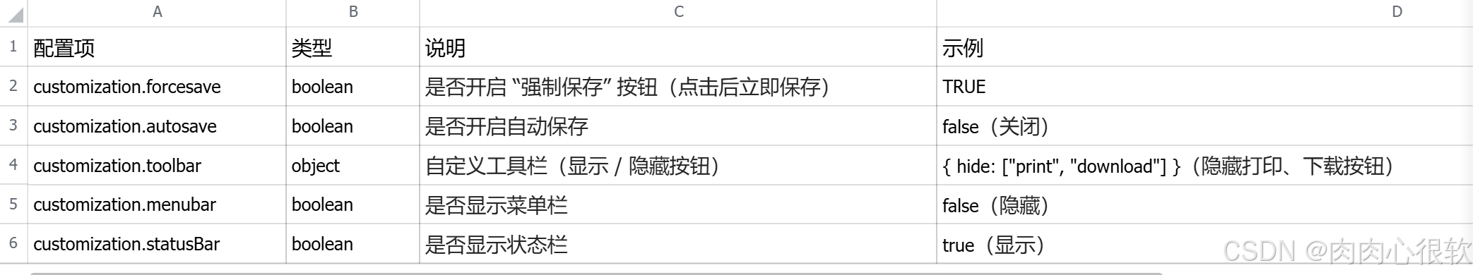 核心配置项分为 基础配置、文档配置、编辑器配置、界面自定义配置 等类别,以下是常用且关键的配置项