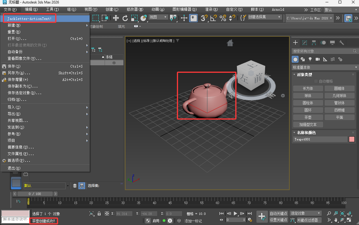 配置完成后,我们回到3dsmax软件,点击主菜单"文件",会看到我们的插件,点击它,效果如下: