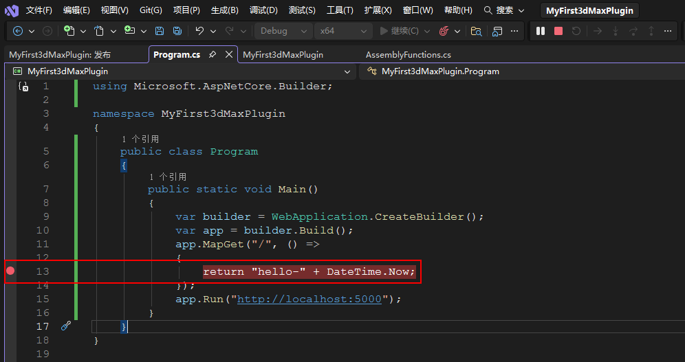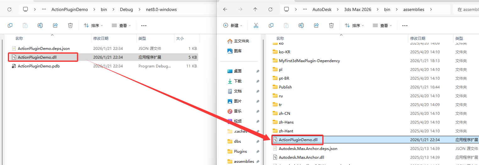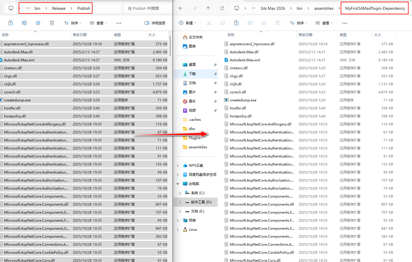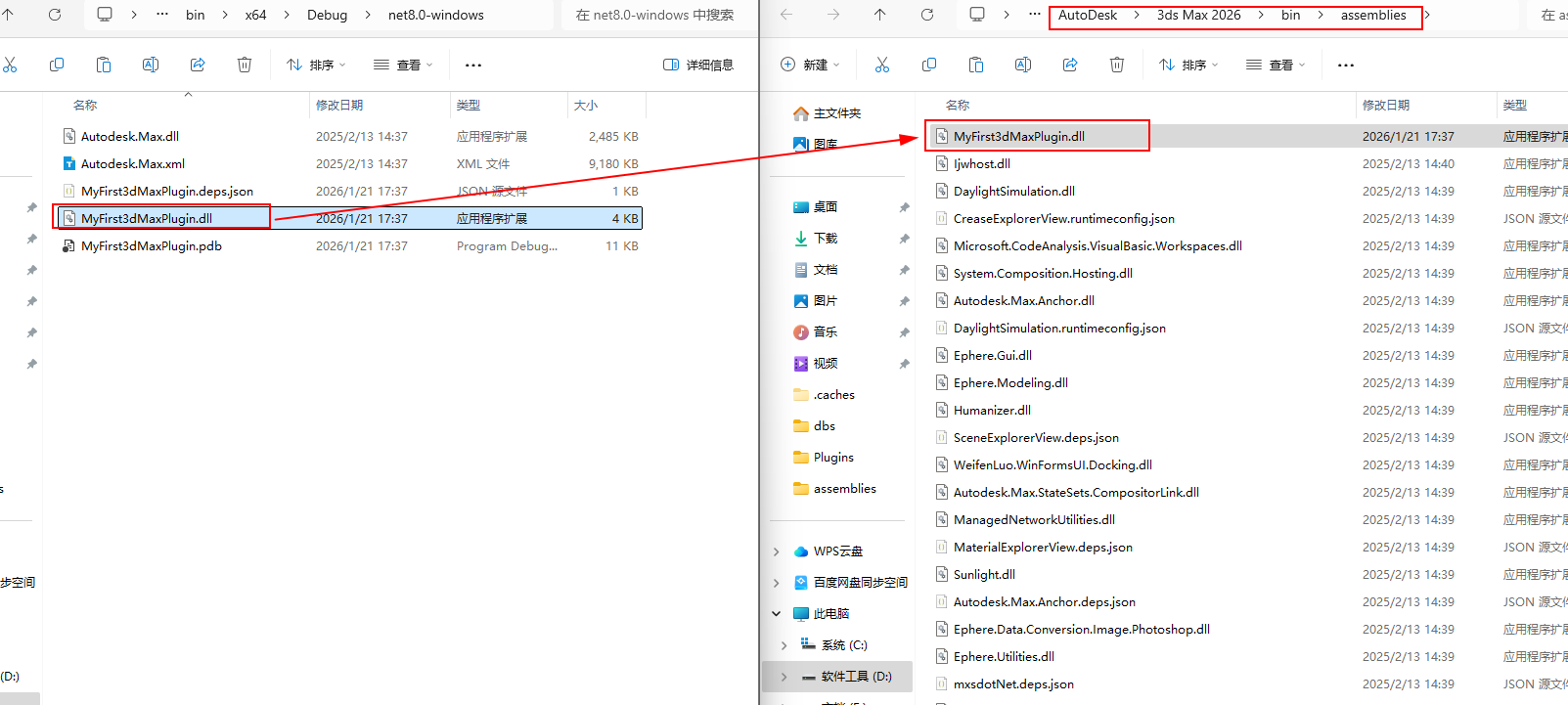 可以将 ·MyFirst3dMaxPlugin.deps.json· 一并拷贝过去