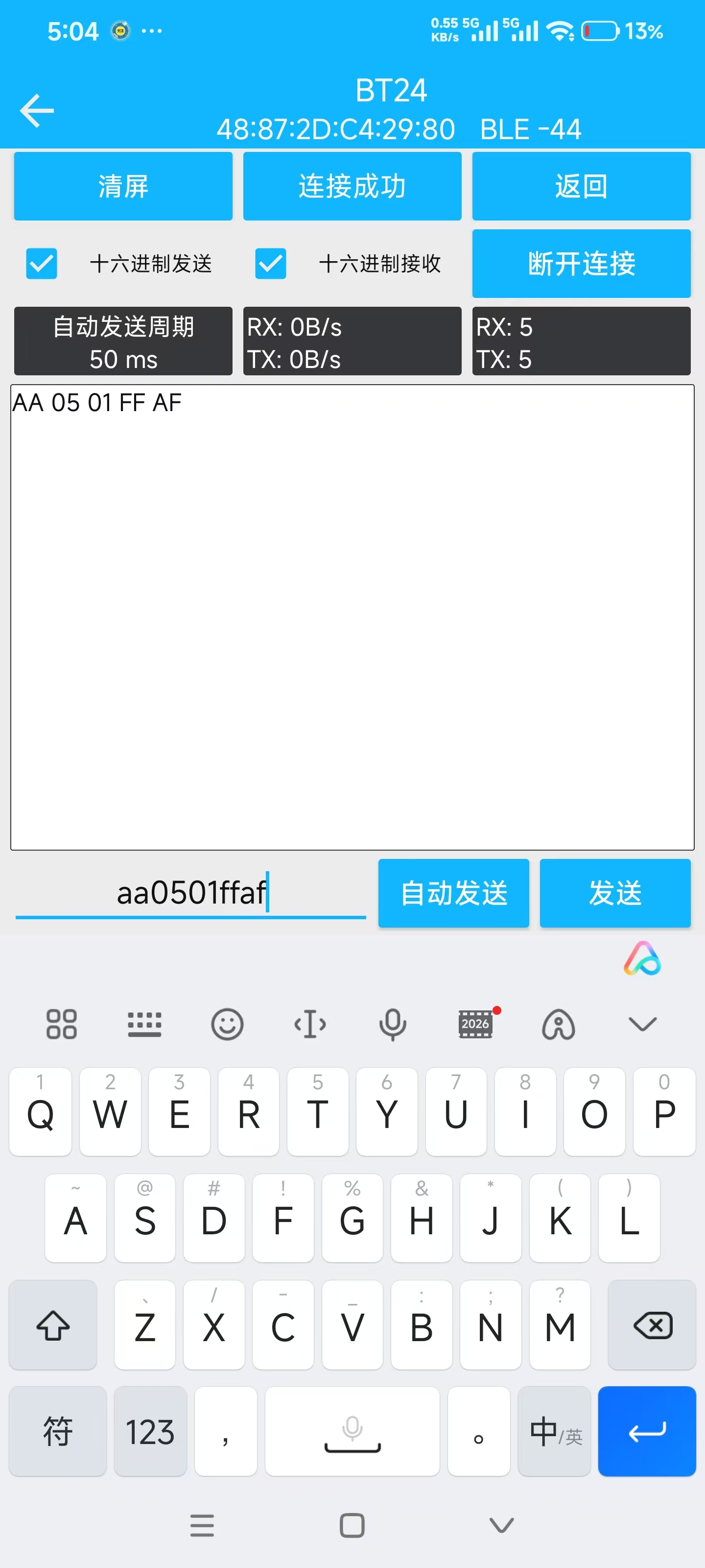 协议约定帧头为 0xAA ,并通过 receiveData[1] 存储的预期长度,和实际接收长度 Size 做比对。