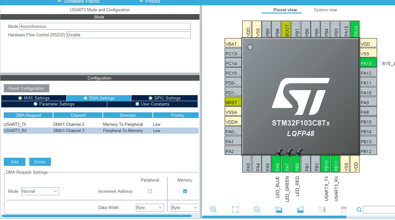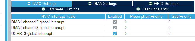 开启USART3中断,添加DMA 通道。
