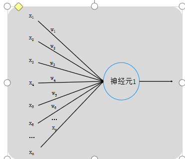 神经元1为输入层,而外部传入的x1、x2、x3、x4、x5、......全部都是外界即将传入神经元的电信号,这些电信号在传入途中可能会有所损耗,而损耗完剩下的才会传入神经元,这些传入的实际信号就用w1x1、w2x2、w3x3、w4x4、w5x5、......来表示,w叫做权重。