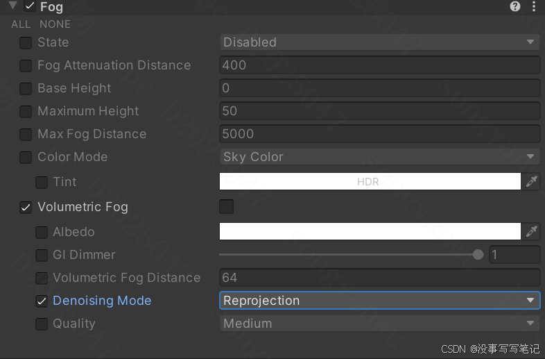 - **Maximum Height(最大高度):**雾的最大垂直高度