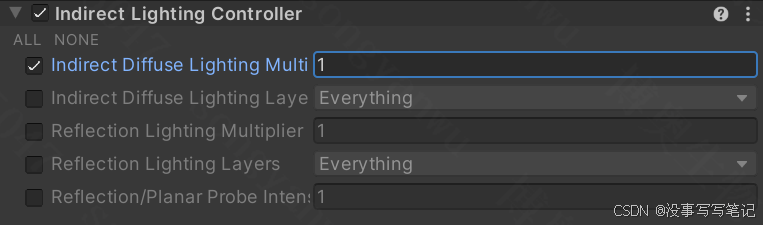- **Indirect Diffuse Lighting Multiplier(间接漫反射光照倍增器):**控制 所有间接漫反射光照 的整体强度