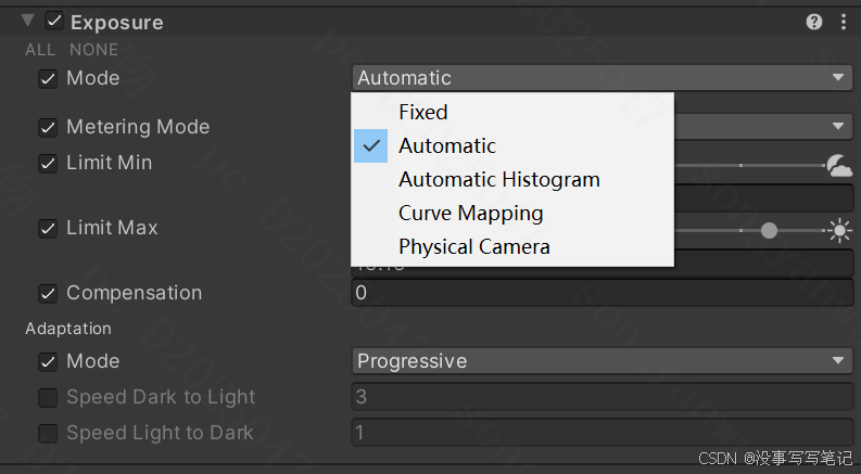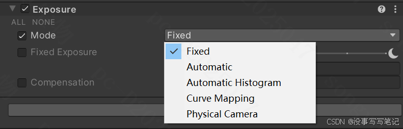 ⚠️ 注意:Exposure 是一个 全局性或区域性的视觉效果,通常属于 Post-processing 的一部分