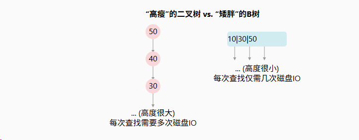想象一下,如果我们在磁盘上用一个普通的二叉搜索树来存储数百万条记录。树会变得非常"高瘦"。