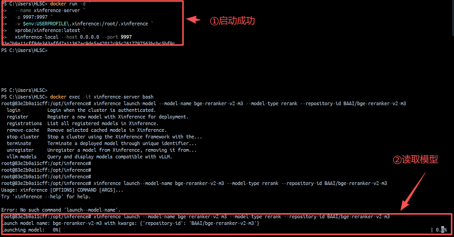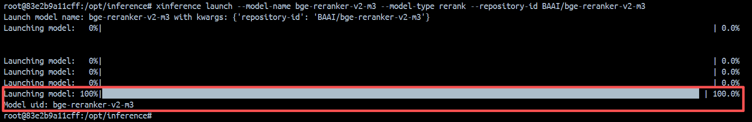 bashdocker exec -it xinference-server bash export HF_ENDPOINT=https://hf-mirror.com xinference launch-model --model-name bge-reranker-v2-m3 --model-type rerank --repository-id BAAI/bge-reranker-v2-m3 -