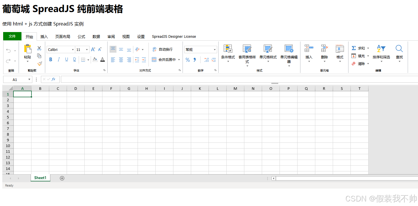 <p>使用 html + js 方式创建 SpreadJS 实例</p>