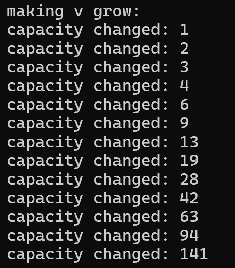 cout << "v1的size:" << v1.size() << ",capacity:" << v1.capacity() << endl; // 3 4