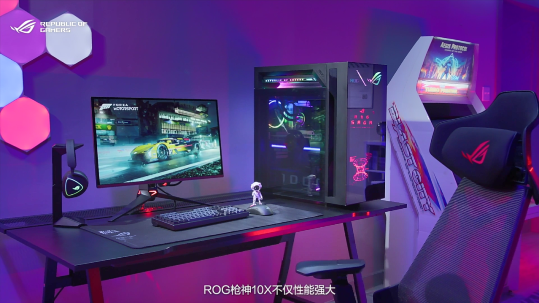 ROG 枪神10X采用104L ATX塔式机箱,大幅增强内部散热空间,支持更高规格散热配置,方便后续维护,其中风扇支持一键开启增强模式,玩家还可通过奥创智控中心和神光同步,对显卡、风扇、水冷、AniMe Holo全息光显风扇的RGB灯效进行调节,打造极具视觉冲击力的高性能电竞台式机。