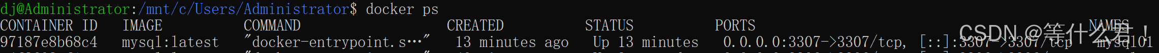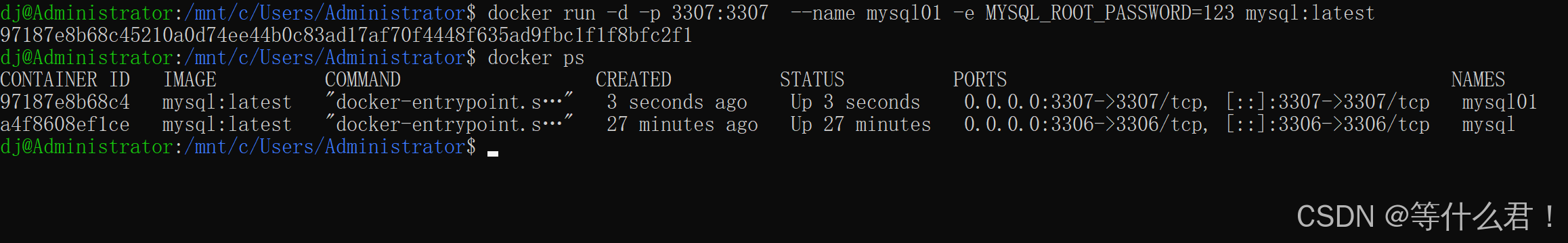注意: 我之所以使用3307作为端口号是因为上一个mysql容器已经将3306端口号占有