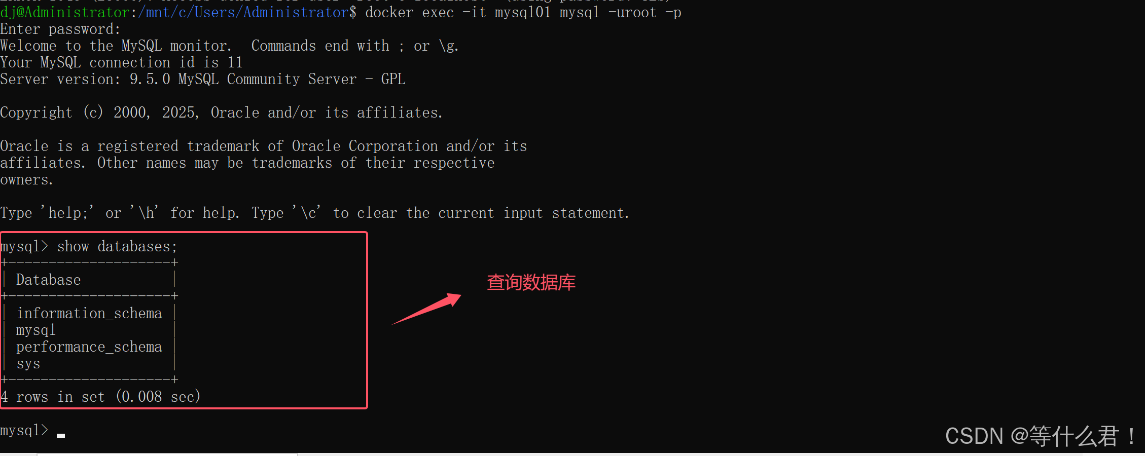 输入命令后,回车 输入密码,切换 mysql 客户端