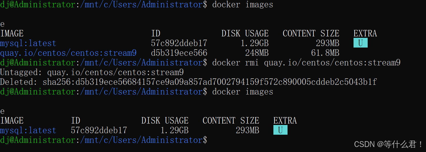- 例如 mysql:latest 显示 1.29GB,就是它在你本地占用的磁盘空间。