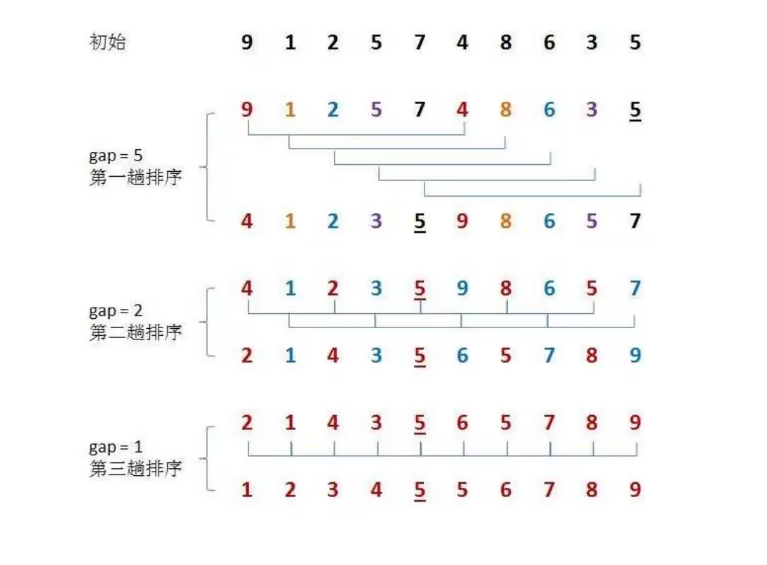 O(N^1.5) - 稳定性:不稳定(由于将数据分组进行了排序,组内排序可能会破坏稳定性)。