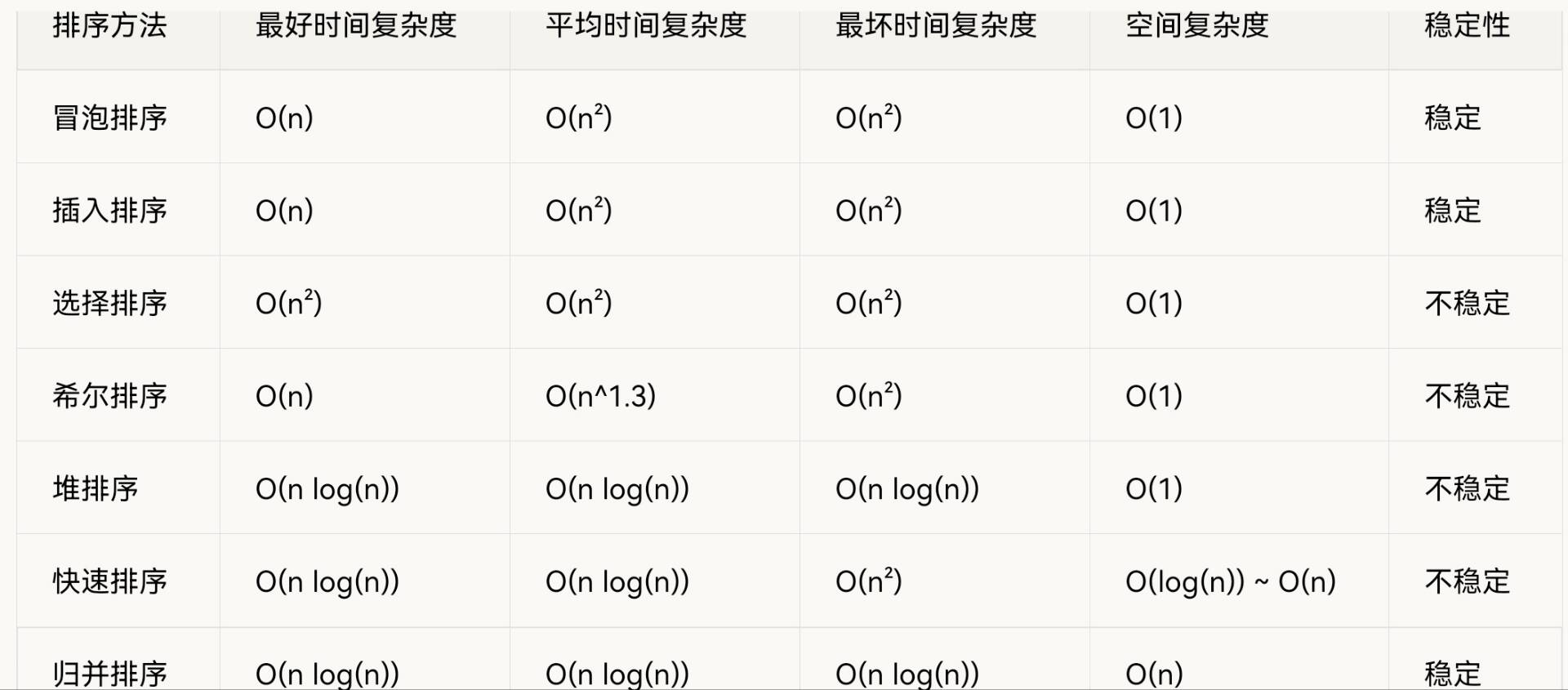 - 排序算法复杂度及稳定性总结表