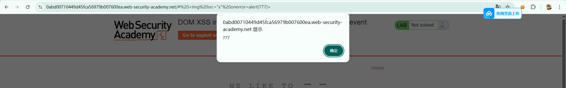 https://0abd00710449d45fca56979b007600ea.web-security-academy.net/# <img src="x" onerror=alert(777)>