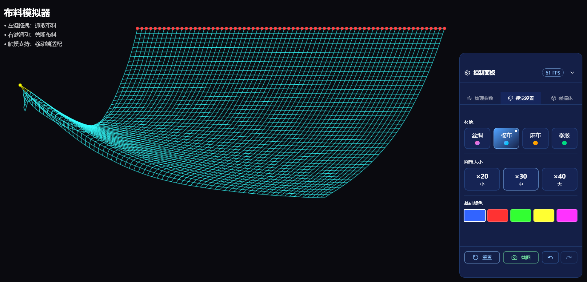 | 左键拖拽 | 抓取并移动布料 |