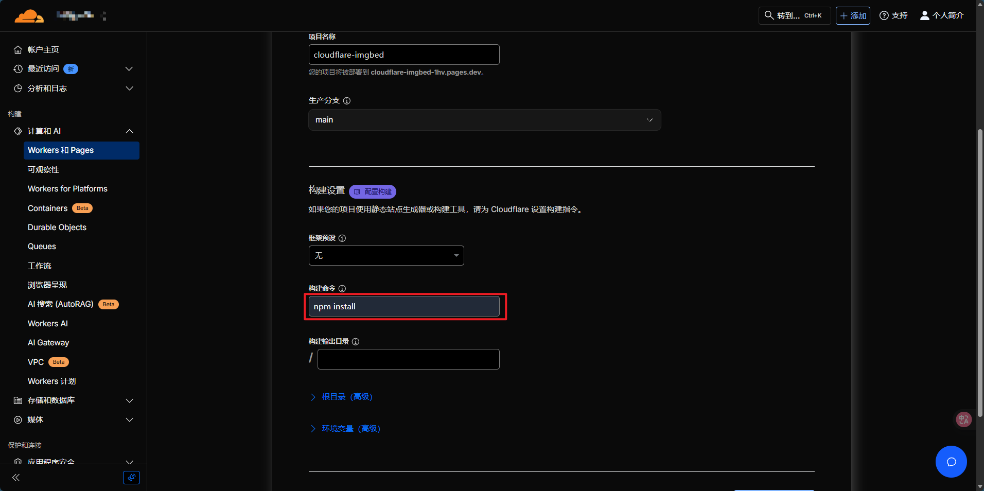 | 项目名称 | cloudflare-imgbed(或自定义) |
