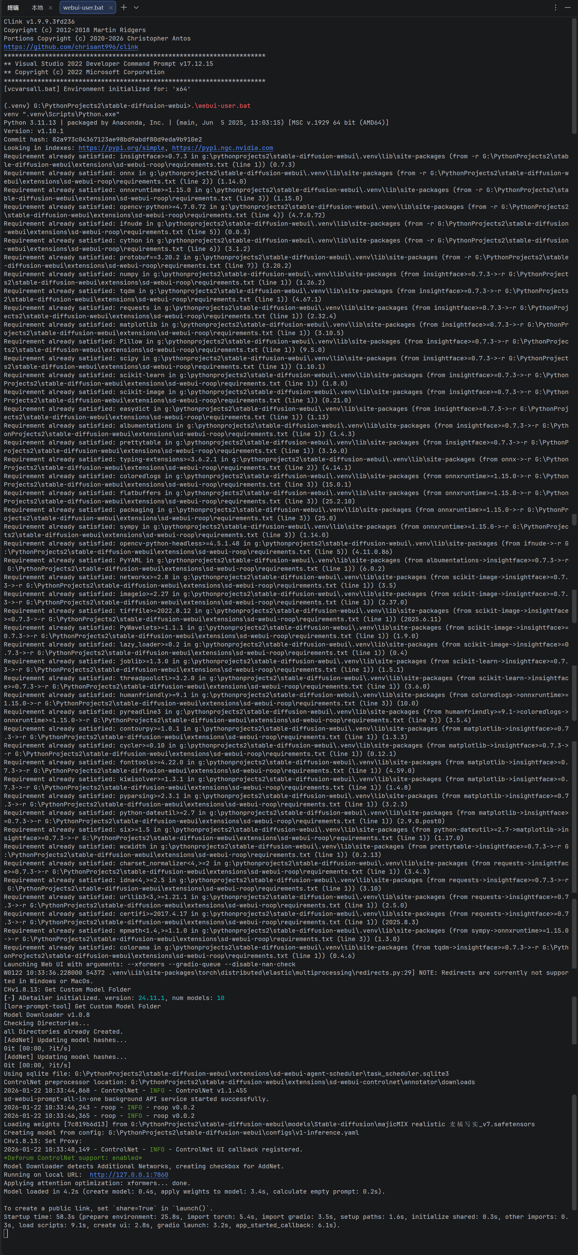 此时,WebUI 界面可以正常打开,但在启动日志中又看到这个报错总感觉不舒服,之前本已经全面处理过,没成想更换主题后却又再次出现了。