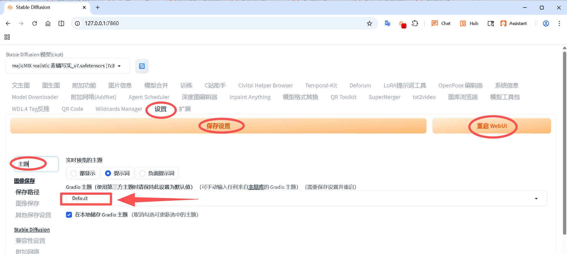 保存并重启 WebUI,此时程序将跳过云端请求,直接加载本地默认样式,报错消失。