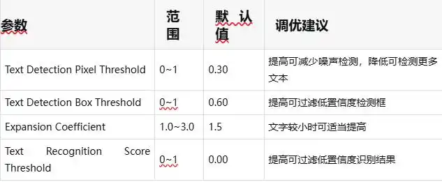 WebUI 提供了丰富的参数调整选项,可根据不同场景优化识别效果:
