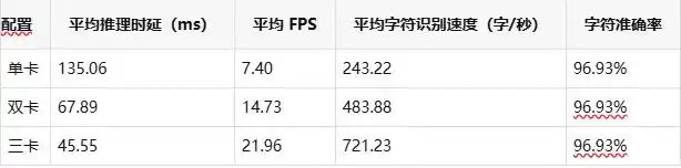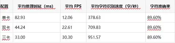 在 x86 平台上,DeepX OCR 针对 单卡、双卡与三卡 配置进行了系统性测试,以评估其多卡扩展能力。