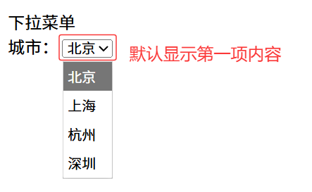 标签:select 嵌套 option,select 是下拉菜单整体,option 是下拉菜单的每一项
