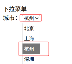 <option selected>杭州</option>