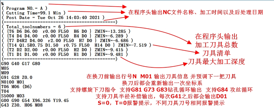 不仅会输出加工刀具总数、刀具清单,还能给出刀具最大加工深度。这对于提前了解加工所需刀具以及加工深度范围很关键,能帮助操作人员提前做好准备。同样,实现这些功能是通过对刀具数据的提取和处理,在程序头合适位置输出。