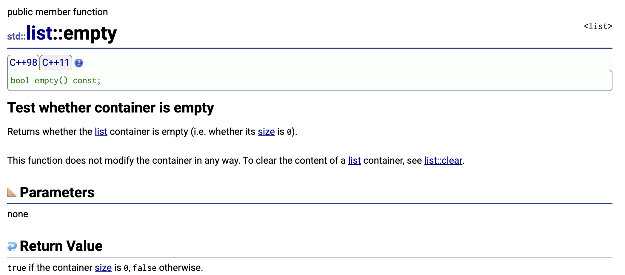 std::cout << "lt1 is empty: " << (lt1.empty() ? "yes" : "no") << std::endl; //yes