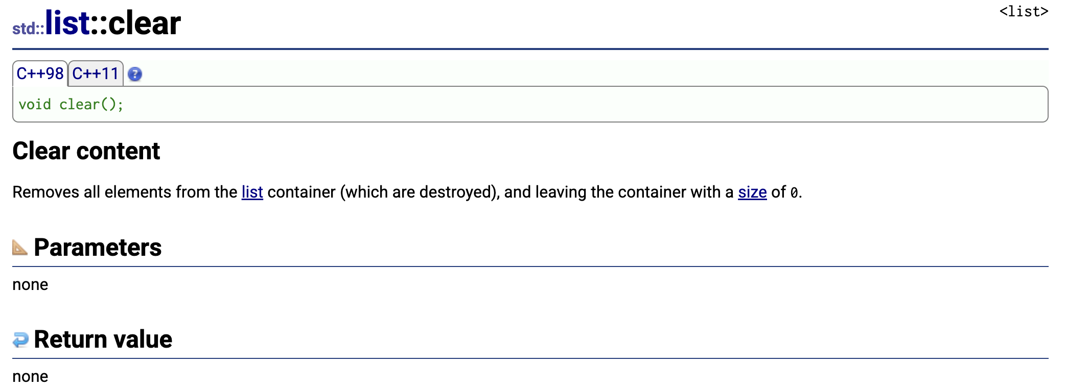 std::cout << "lt1 size after clear: " << lt1.size() << std::endl; // 0