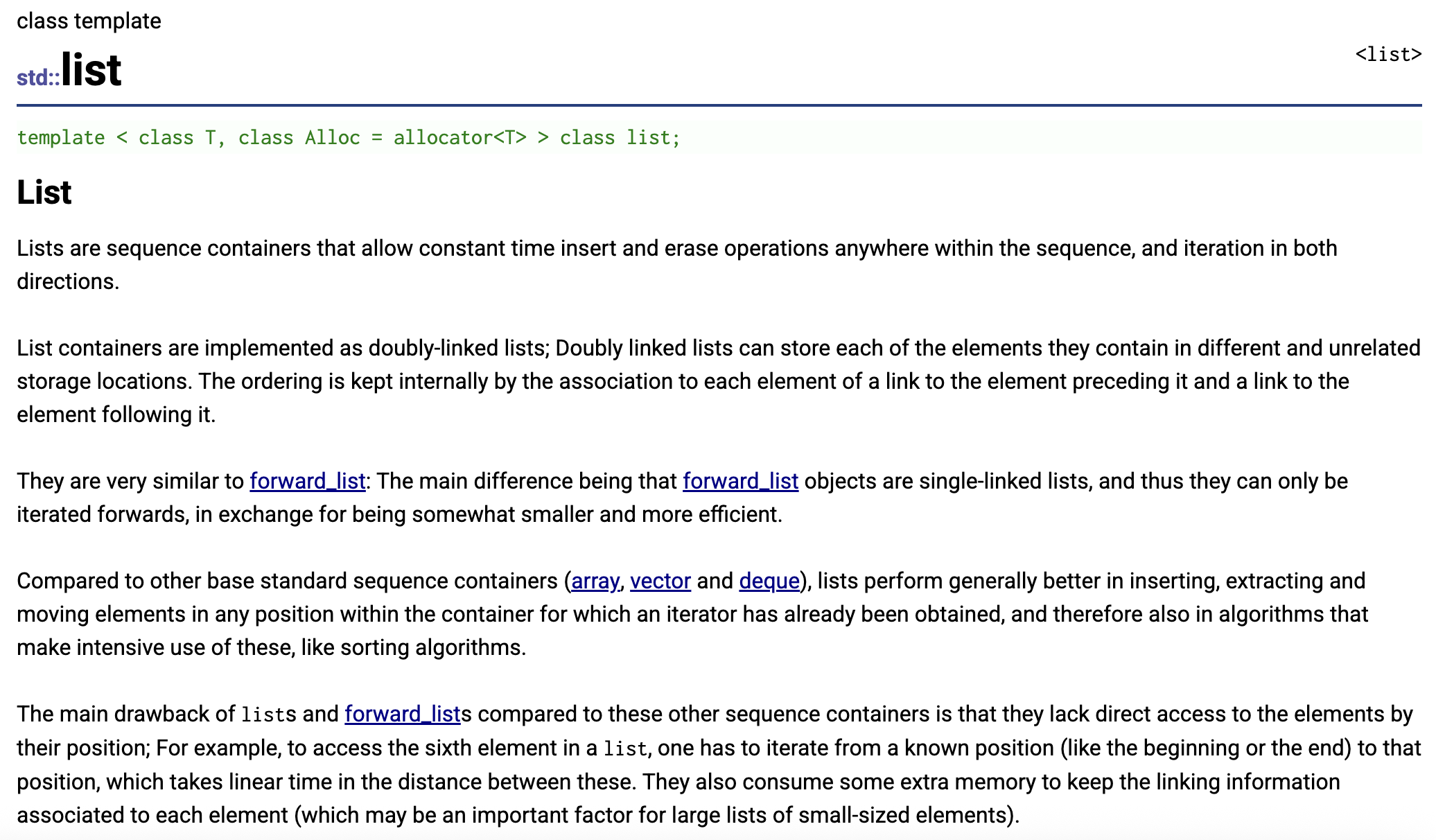 vector/deque(因为不需要移动其他元素),适合频繁修改元素位置的场景(比如排序算法).❌ 劣势