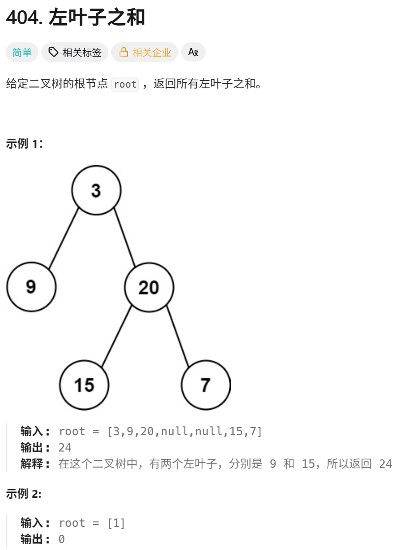 题目链接: https://leetcode.cn/problems/sum-of-left-leaves/description/