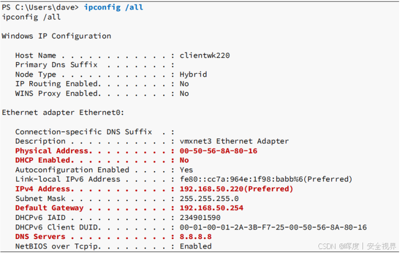 192.168.50.254)、DNS服务器 和MAC地址。 -