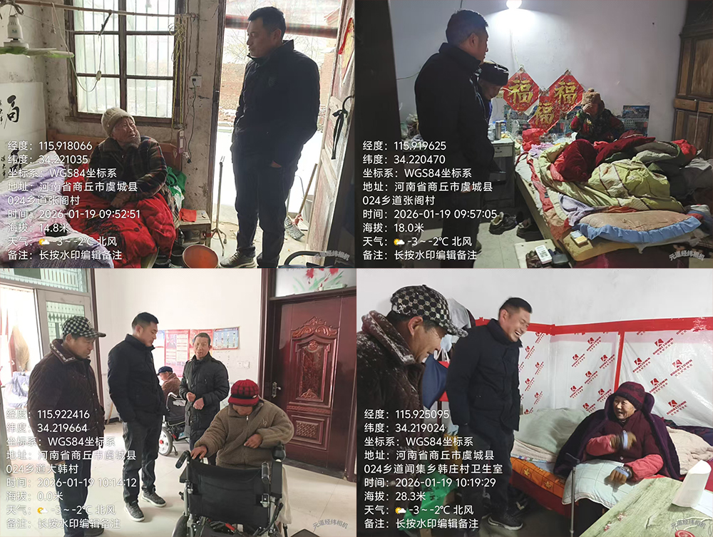 腊月初一(2026年1月19日)清晨,雪花漫天飞舞,严寒笼罩着中原大地。一支特殊的队伍踏着积雪穿梭在村巷间,在基层党组织组长韩军广书记的带领下,以孝治家试点单位------河南省虞城县闻集乡韩庄村的三支队伍义工们,顶风冒雪挨家挨户走访排查灾情。