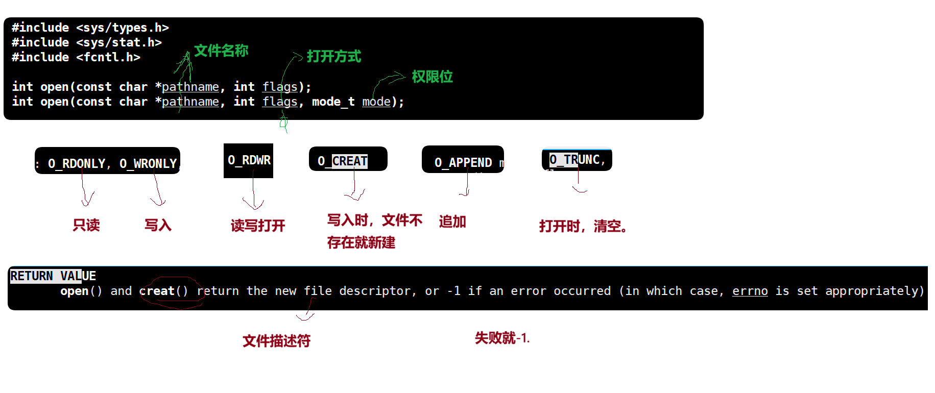 我们在C语言的文件操作函数,实际上在底层封装了open系统调用。