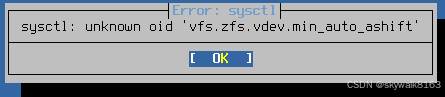 报错信息 sysctl: unknown oid 'vfs.zfs.vdev.min_auto_ashift' 表示系统不认识 vfs.zfs.vdev.min_auto_ashift 这个 OID(对象标识符)。
