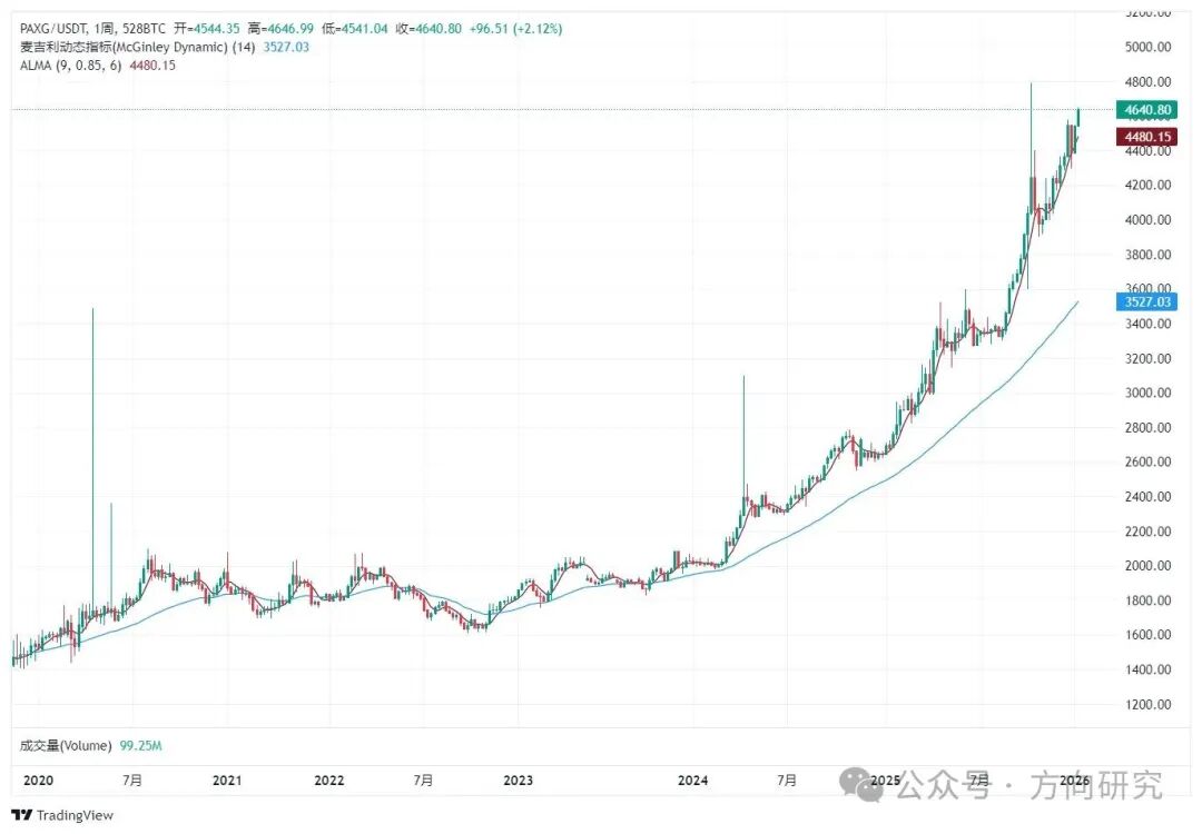 从供需基本面维度来看,全球央行 2025 年净购金量达 902 吨,黄金 ETF 持仓量突破 3932 吨创历史新高,而全球矿产金产量仅增长 2.5%,供需失衡格局日益明显。特别是央行购金行为,不仅直接增加了需求,更重要的是向市场传递了强烈的看多信号,推动了 "去美元化" 进程。