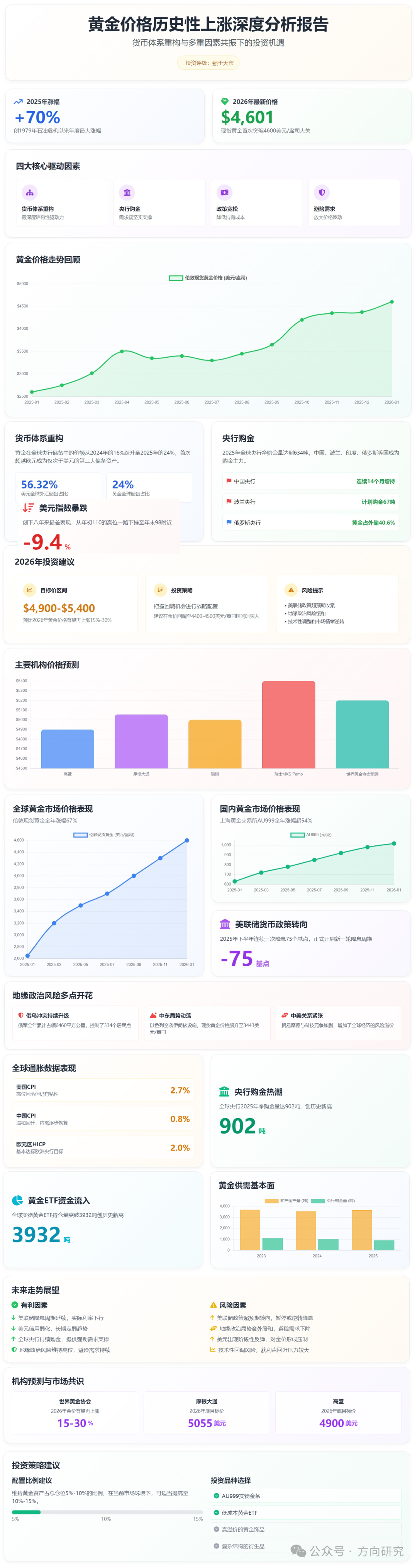 通过对 2025 年以来黄金市场的全面分析,可以得出结论:本轮黄金价格上涨是货币政策、地缘政治、通胀预期、供需基本面等多重驱动因素共振的结果,具有坚实的基本面支撑和深远的历史意义。